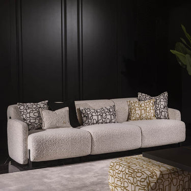 Az Etro négy személyes kanapé elegáns és kényelmes választás nappalidba. A bézs szövetkárpit időtálló megjelenést kölcsönöz, amely könnyedén illeszkedik bármilyen enteriőrbe. A tágas kialakításnak köszönhetően akár négy személy számára is kényelmes ülőhelyet biztosít, míg a mellékelt párnák tovább fokozzák a komfortérzetet. A 266 cm széles, 75 cm magas és 104 cm mély kanapé ideális választás a pihenéshez és a családi vagy baráti összejövetelekhez.
