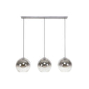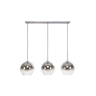 A króm színű ARIA 3L csillár modern, minimalista terek tökéletes világítóteste. Keskeny, téglalap alakú mennyezeti rögzítőjéből három gömb alakú üvegbura függ, amelyek kifinomult, tükröződő hatást keltenek.