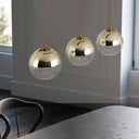 Az ARIA 3R háromlámpás kerek csillár arany színben luxusérzetet és eleganciát sugároz. A Ø30 cm-es fém talapzatból függesztett három gömb formájú üvegbura finoman szórja a fényt, így meleg, otthonos atmoszférát teremt. A kombinált színválaszték lehetővé teszi, hogy a lámpa klasszikus és modern enteriőrökben egyaránt kifinomult kiegészítőként jelenjen meg.