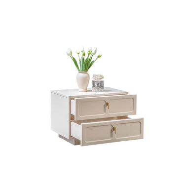 A Dante éjjeliszekrény letisztult formavilágával és ekrü színű felületével elegáns és időtálló kiegészítője lehet hálószobádnak. A finoman kidolgozott felület prémium megjelenést kölcsönöz, míg praktikus kialakítása elegendő tárolóhelyet biztosít a mindennapi használati tárgyak számára. Masszív szerkezete és kiváló minőségű anyaghasználata garantálja a hosszú élettartamot. Tökéletes választás modern és glamour enteriőrökbe, különösen a Dante hálószoba kollekció többi darabjával kombinálva.