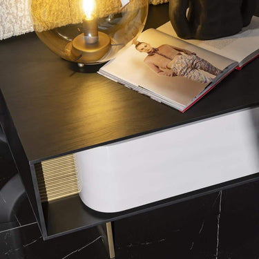 Az Etro éjjeliszekrény modern és elegáns kiegészítője lehet hálószobádnak. A fekete-fehér színkombináció letisztult megjelenést biztosít, amely könnyedén illeszkedik bármilyen enteriőrbe. Kompakt mérete (68 x 36 x 45 cm) ellenére praktikus tárolóhelyet kínál, így minden fontos apróság könnyen elérhető marad. Letisztult vonalvezetésének és minőségi kialakításának köszönhetően nemcsak esztétikus, hanem tartós és funkcionális választás is.