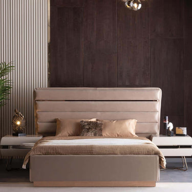 A Lorenzo éjjeliszekrény elegáns és kifinomult kialakításával tökéletes kiegészítője bármilyen hálószobának. A bronz és tejeskávé színkombináció harmonikus összhangot teremt, amely melegséget és luxusérzetet sugároz. A prémium minőségű anyagokból készült bútordarab nemcsak esztétikus, hanem rendkívül tartós is. Letisztult vonalvezetése és finoman kidolgozott részletei modern, mégis időtálló megjelenést biztosítanak. A praktikus tárolóhely elegendő helyet kínál az esti kellékeknek, míg a stabil szerkezet hosszú távú megbízhatóságot garantál.