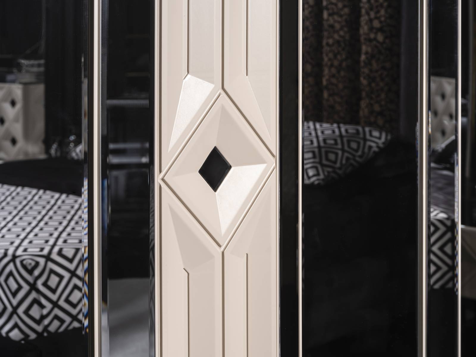 Az Asus gardróbszekrény letisztult és modern kialakításával tökéletes választás bármilyen hálószobába. A fehér felület világos, elegáns megjelenést biztosít, míg a tükrös ajtók nemcsak praktikusak, hanem optikailag tágítják a teret, világosabbá és nagyobbá téve a helyiséget. Tágas belső kialakítása elegendő helyet kínál ruhák és kiegészítők rendszerezésére, így segít a rendezett otthon megteremtésében. Az Asus gardróbszekrény ideális választás azok számára, akik a funkcionalitást és a stílust egyaránt fontosnak tartják.