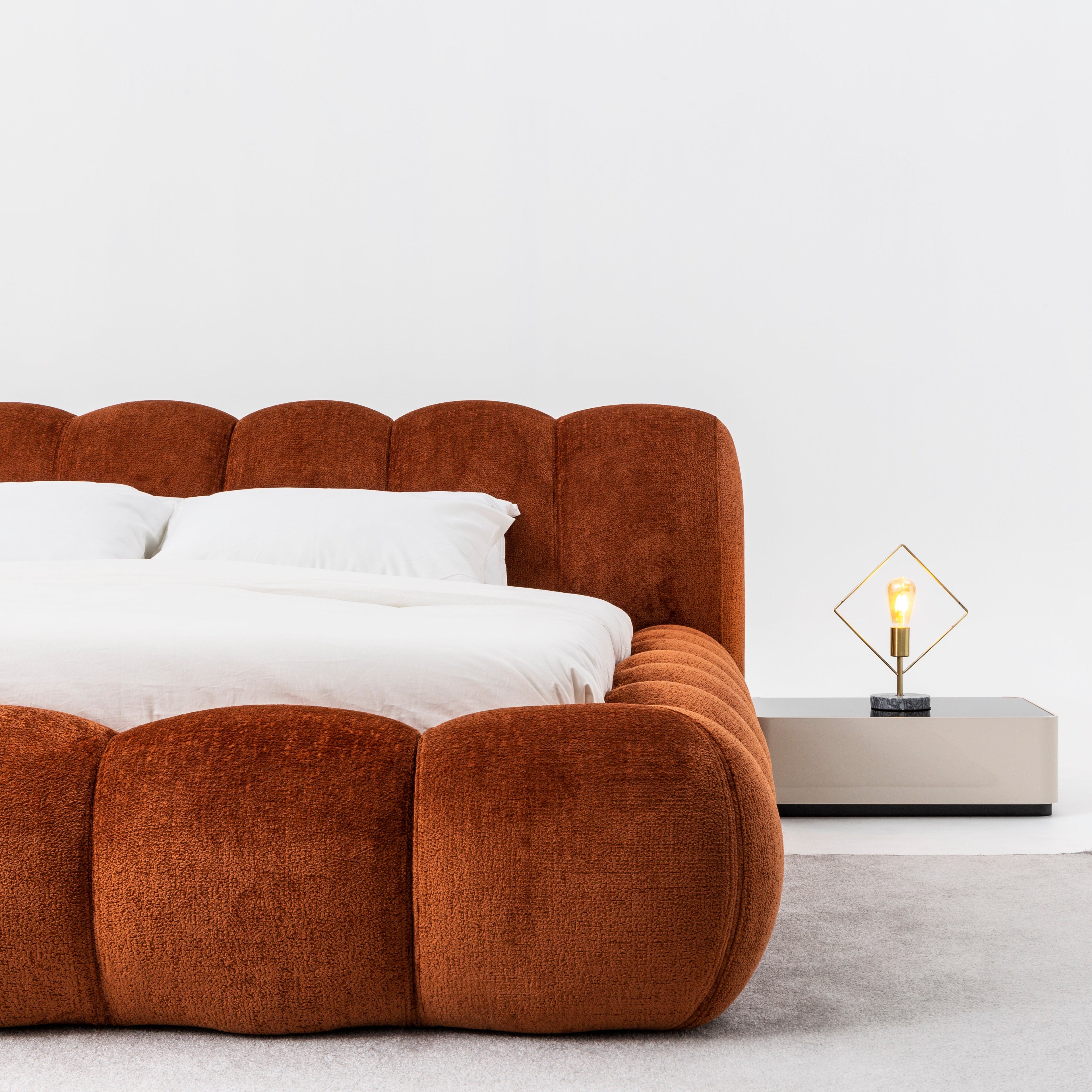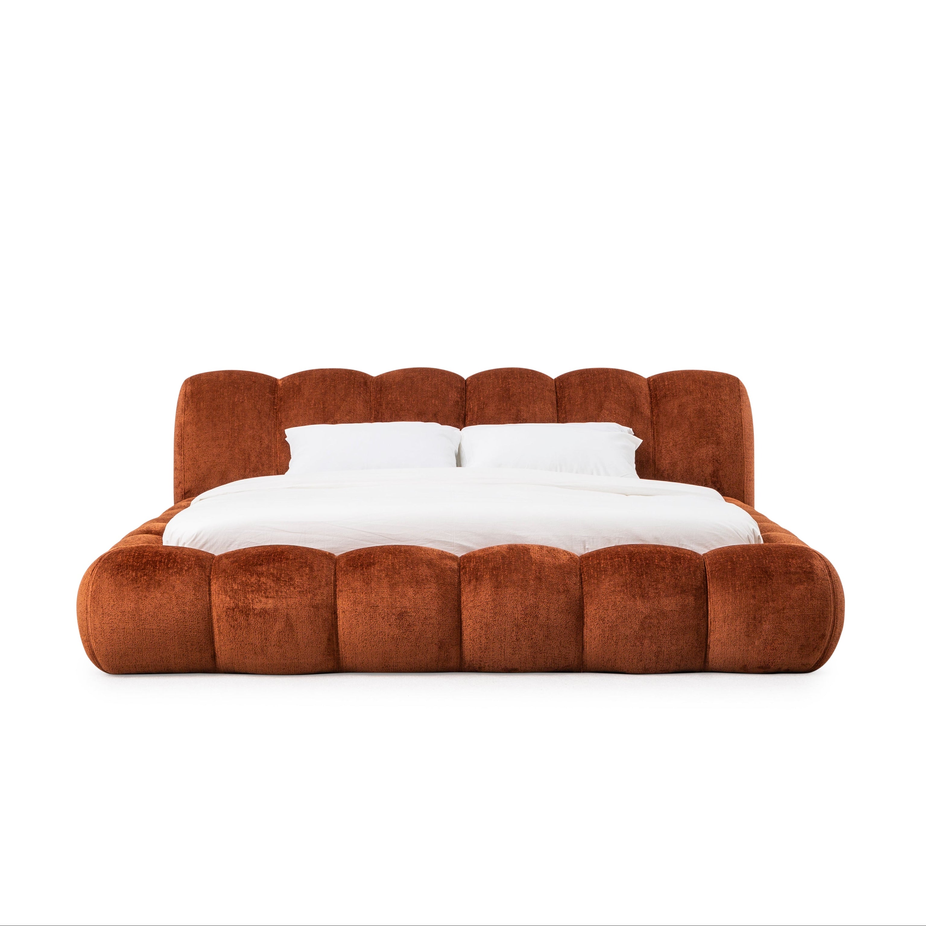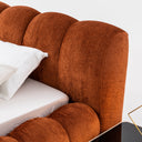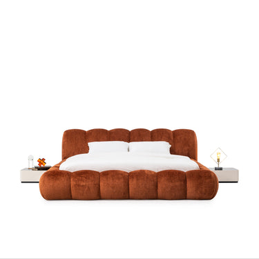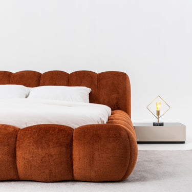 A téglavörös kárpitozott franciaágy karakteres színével azonnal a hálószoba fókuszpontjává válik. A puha, bársonyos hatású kárpit és a hangsúlyos, párnázott fejvég prémium megjelenést és kényelmet kínál. Az alacsony profil kortárs stílust sugall, miközben meleg, otthonos hangulatot teremt. A stabil vázszerkezet biztos alátámasztást nyújt a mindennapi használat során. A téglavörös árnyalat tökéletes választás egyedi, mégis elegáns enteriőr kialakításához. A franciaágy standard méretekben érhető el, így könnyen illeszkedik a hálószobába.
