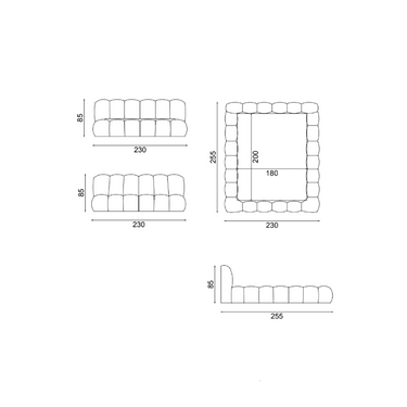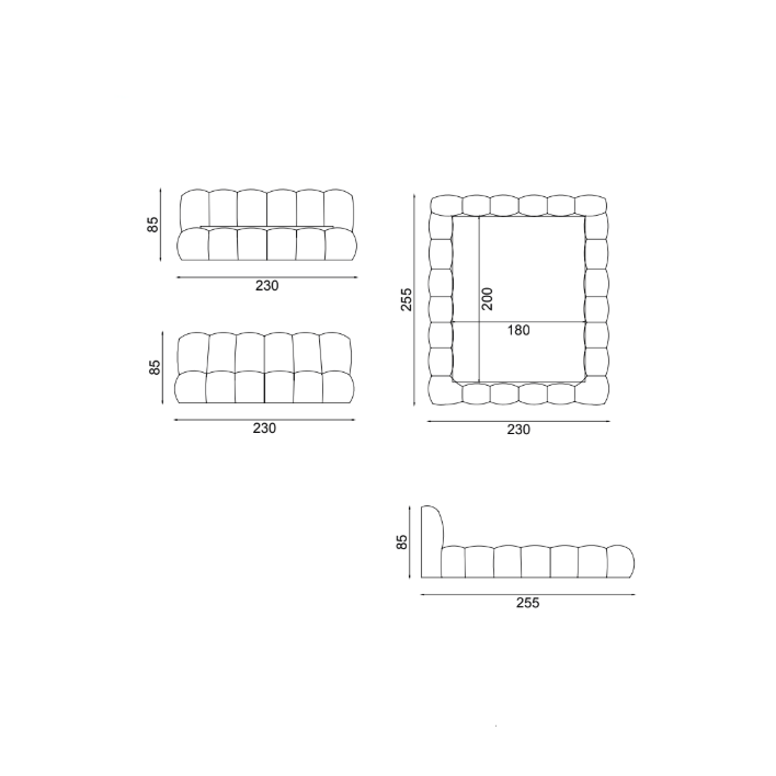 Az ágy teljes külső mérete 230 cm széles, 255 cm hosszú és 85 cm magas, a fekvőfelület 160×200 cm vagy 180×200 cm, így látványos megjelenést és kényelmes térérzetet biztosít a hálószobában.