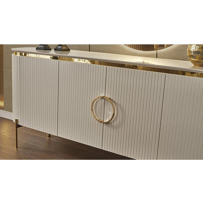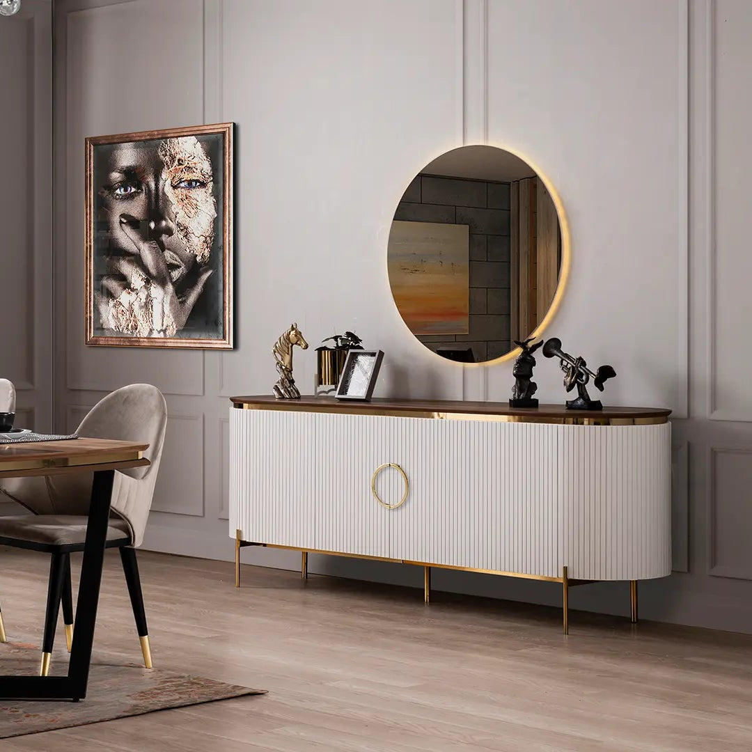A Tesla tálalószekrény egy letisztult és modern bútordarab, amely eleganciát és praktikus tárolást biztosít bármely étkező vagy nappali számára. A fehér szín friss, világos megjelenést kölcsönöz, miközben a tágas tárolóhelyek segítenek rendben tartani étkészleteket, poharakat és egyéb kiegészítőket. A 208 cm-es magassága biztosít elegendő helyet, hogy minden szükséges eszközt rendezett módon elhelyezhessünk. Tökéletes választás, ha egy modern, stílusos és praktikus bútort keresel otthonodba.