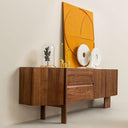 Az Atlas tálalószekrény mogyoróbarna színben és 233 cm-es méretével impozáns és praktikus kiegészítője lehet étkeződnek vagy nappalidnak. A letisztult, elegáns dizájn és a meleg mogyoróbarna árnyalat bármilyen enteriőrbe tökéletesen illeszkedik, miközben időtálló stílust ad a térnek. A tágas polcok és tárolóhelyek rengeteg helyet kínálnak étkészletek, poharak, dísztárgyak és egyéb kellékek számára, így segít rendszerezni a dolgokat és átláthatóvá tenni a teret.