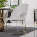 Az Octo étkezőszék a luxus és a modern design tökéletes ötvözete. A puha, fehér bolyhos kárpit elegáns és meghitt hangulatot teremt, míg az arany színű, fémből készült lábak exkluzív megjelenést biztosítanak. Az ergonomikus kialakítás és a kényelmes ülőfelület garantálja a maximális komfortot, akár hosszabb étkezések során is.