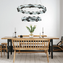 Az Elance különleges, kétszintes kialakítása dinamikus, mégis harmonikus megjelenést kölcsönöz bármely enteriőrnek. A két lebegő, króm-ezüst körgyűrű (40 cm és 60 cm) sötét tónusú, kifelé domborodó rombusz alakú üvegmozaikkal van körbeépítve – ezek fürtszerű elrendezése a fényt változatosan töri meg, így meleg, ragyogó hatást teremt. A szinte láthatatlan, vékony felfüggesztés könnyed, lebegő hatást biztosít.