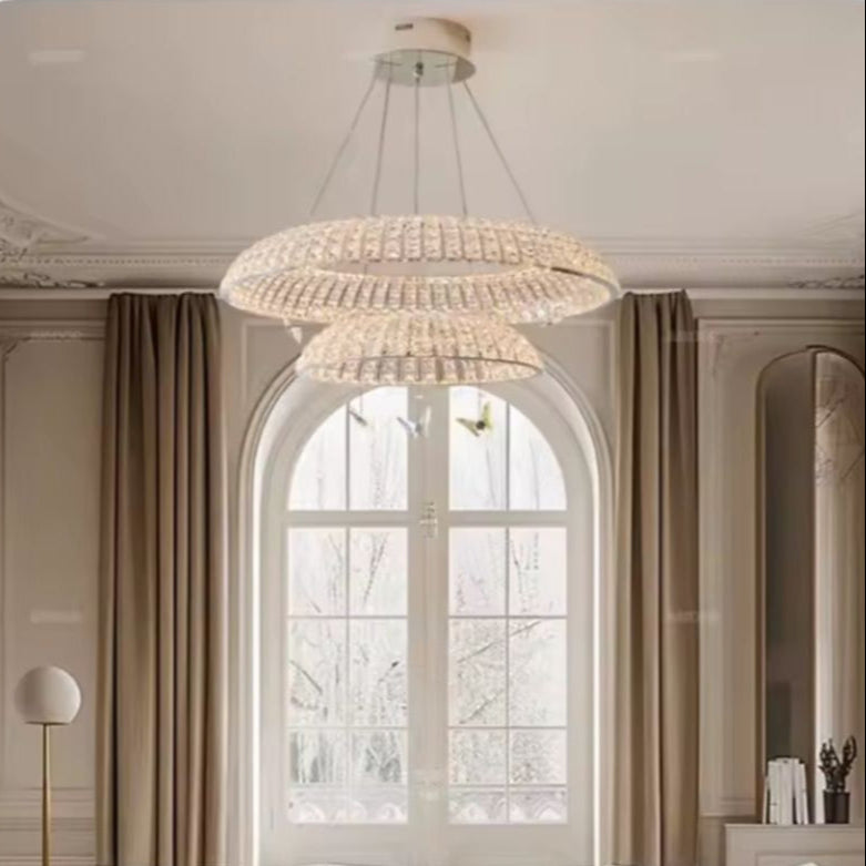 A Lumarelle Duo modellek a kollekció leglátványosabb darabjai. Két elegánsan egymás fölé helyezett K9 kristálygyűrű lebeg a térben, lenyűgöző fényhatást keltve – nappali vagy előtér központi elemeként is tökéletesek.