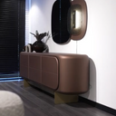 A HERA kollekció konzolasztala a kortárs design és a kifinomult részletgazdagság tökéletes kombinációja. Lekerekített formavilága, prémium bőrhatású felülete és különleges, lebegő hatású lábazata egyszerre teszi markánssá és letisztulttá a bútort.