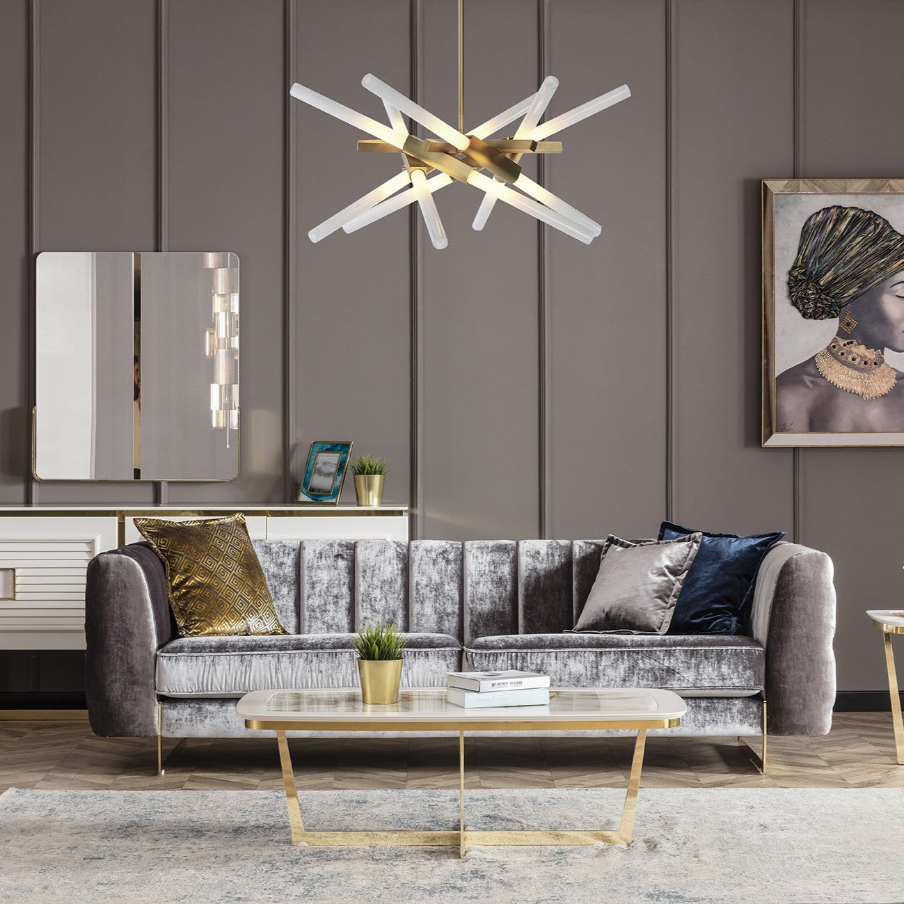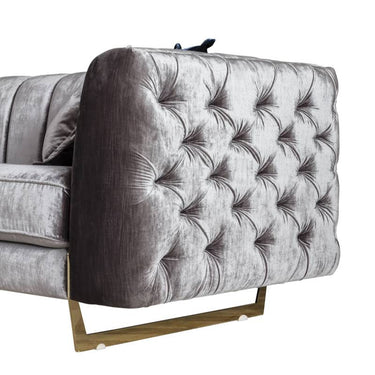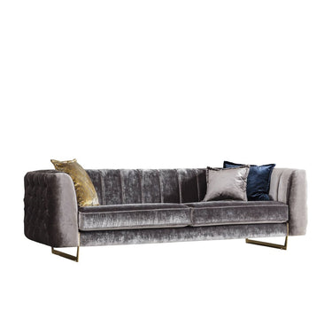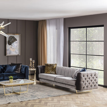 A Glória háromszemélyes kanapé eleganciájával és luxus megjelenésével tökéletes kiegészítője lehet bármely modern nappalinak. Az ezüst színű bársony kárpitozás kifinomult és fényűző hatást kelt, miközben rendkívül kényelmes ülést biztosít. Az arany lábak exkluzív megjelenést kölcsönöznek, emelve ezzel a kanapé stílusát. A tágas háromszemélyes kialakítás ideális családi és társasági alkalmakhoz, miközben a prémium anyagok és a gondosan megtervezett részletek hosszú távú kényelmet és tartósságot biztosítanak. A Glória kanapé nemcsak egy bútor, hanem egy igazi dizájnelem, amely minden teret eleganciával tölt meg.
