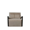 Ez a stílusos fotel tökéletes társ az olvasáshoz vagy pihenéshez. A markáns, ívelt fekete karfa kontrasztot alkot a világos kárpittal, így egyszerre modern és időtálló. A vastag párnázás és a stabil kialakítás biztosítja a kényelmet hosszú távon is.