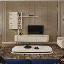 A TESLA TV-szekrény a modern elegancia és a kifinomult részletek tökéletes találkozása. Letisztult, ívelt formavilága és arany színű fém kiegészítői luxus hangulatot visznek a nappaliba. Prémium minőségű anyagokból készült, így nemcsak tartós, hanem stílusos központi eleme is lehet az enteriőrnek. A szekrény tágas tárolóhelyet kínál, amelyben könnyedén elférnek a médiaeszközök, kiegészítők és dísztárgyak. Finoman bordázott frontfelületei elegáns textúrát adnak, ami kiemeli a bútor egyediségét. Kompakt mérete miatt ideális választás kisebb és nagyobb terekbe egyaránt. Könnyen kombinálható más modern vagy glam stílusú bútorokkal, így harmonikus összképet teremt. A TESLA TV-szekrény azoknak készült, akik egyszerre keresnek funkcionalitást és exkluzív dizájnt.