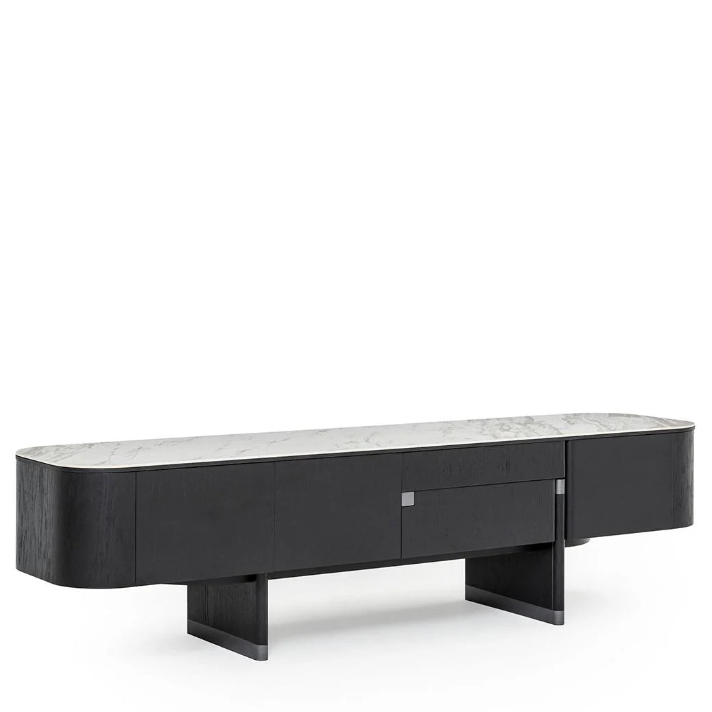A Delta kollekció TV-szekrénye tökéletesen ötvözi a modern minimalizmust a praktikus tárolással. Ívelt élei, vékony vonalvezetése és visszafogott részletei eleganciát sugároznak, miközben diszkréten rendszerezik a nappalid technikai eszközeit.