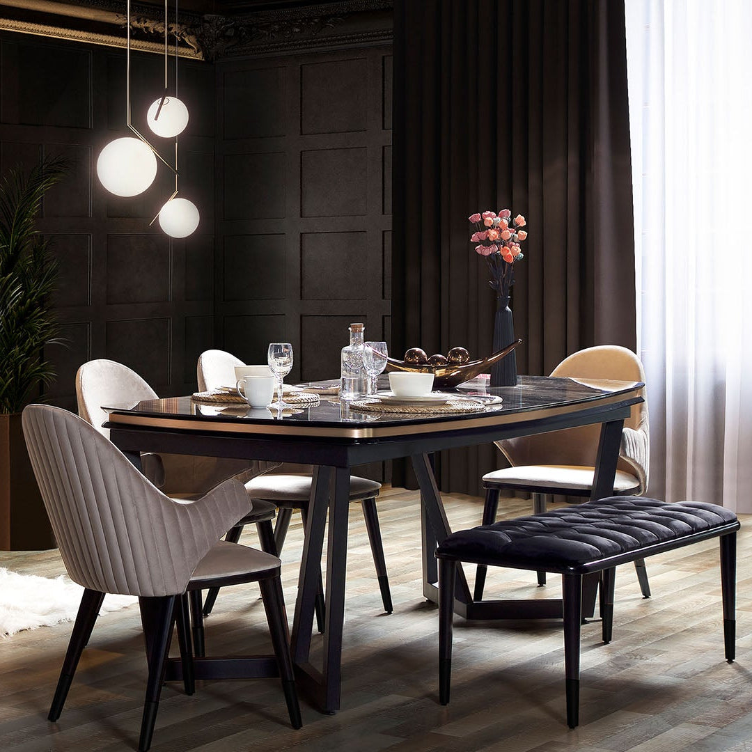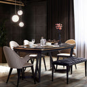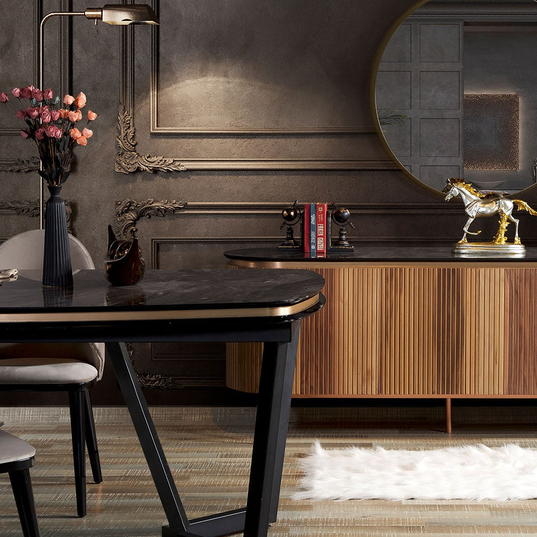 A Tesla Walnut Collection modern, letisztult étkezőasztal-sorozat, amely a diófa eleganciáját ötvözi a választható prémium fém díszítőelemekkel. A kollekció karakterét a természetes dió erezet, a masszív szerkezet és a minimalista design határozza meg, amely minden enteriőrben visszafogott, mégis impozáns megjelenést biztosít.