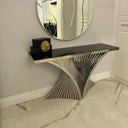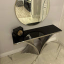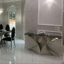 A Candy króm konzolasztal modern és elegáns megjelenésével bármilyen térbe illeszkedik, és lenyűgözi látványos dizájnjával. A rozsdamentes acél, amely krómra van fújva, fényes, kifinomult hatást kelt, míg a temperált üveglap letisztult, átlátszó felülete kiemeli az asztal minimalista stílusát. A 160 cm hosszú, 80 cm magas, és 40 cm mély méretek ideálisak előszobákba, nappalikba vagy bármilyen más térbe, ahol egy elegáns, de praktikus tárolóhelyet keresünk. A Candy konzolasztal egyedülálló kiegészítője lehet otthonának, amely nemcsak funkcionalitásával, hanem dizájnjával is lenyűgözi a látogatókat.
