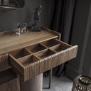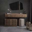 Az Osaka sminkasztal világosbarna fa hatású felületével és letisztult kialakításával tökéletes választás minden modern és klasszikus enteriőrbe. Kompakt, mégis praktikus kialakítása elegendő helyet biztosít sminktermékek, ékszerek és egyéb kiegészítők tárolására, így mindig rendezetten tarthatod a szépségápolási eszközeidet. A hozzá tartozó puff nemcsak kényelmes ülőhelyet biztosít, hanem tökéletesen illeszkedik az asztalhoz, így harmonikus megjelenést kölcsönöz a térnek. Ideális választás hálószobába vagy öltözőhelyiségbe, ahol a funkcionalitás és az elegancia egyaránt fontos.