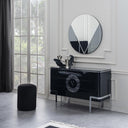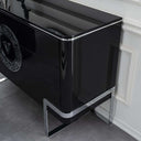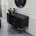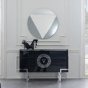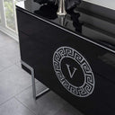 A Versace konzolasztal elegáns, modern dizájnjával lenyűgöző kiegészítője bármely belső térnek. A magasfényű fekete felület egyedi stílust kölcsönöz, míg a króm színű lábak eleganciát és stabilitást biztosítanak. A konzolasztalhoz tartozó puff még kényelmesebbé teszi a használatát, ideális helyet kínálva pihenésre vagy kiegészítők tárolására. Fontos megjegyezni, hogy a konzolasztalon nincs rajta a Versace logó, és a tükör sem tartozik hozzá, a kép csupán illusztráció. A Versace konzolasztal tökéletes választás azok számára, akik egyedülálló, stílusos bútordarabot keresnek.