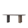 Az asztal különlegességét a két ívelt gránitkőből készült, hosszúkás formájú láb adja, amelyek egyszerre biztosítanak stabilitást és szoborszerű, modern megjelenést. A masszív felépítés ellenére az ívelt vonalvezetés finoman könnyed hatást kelt.