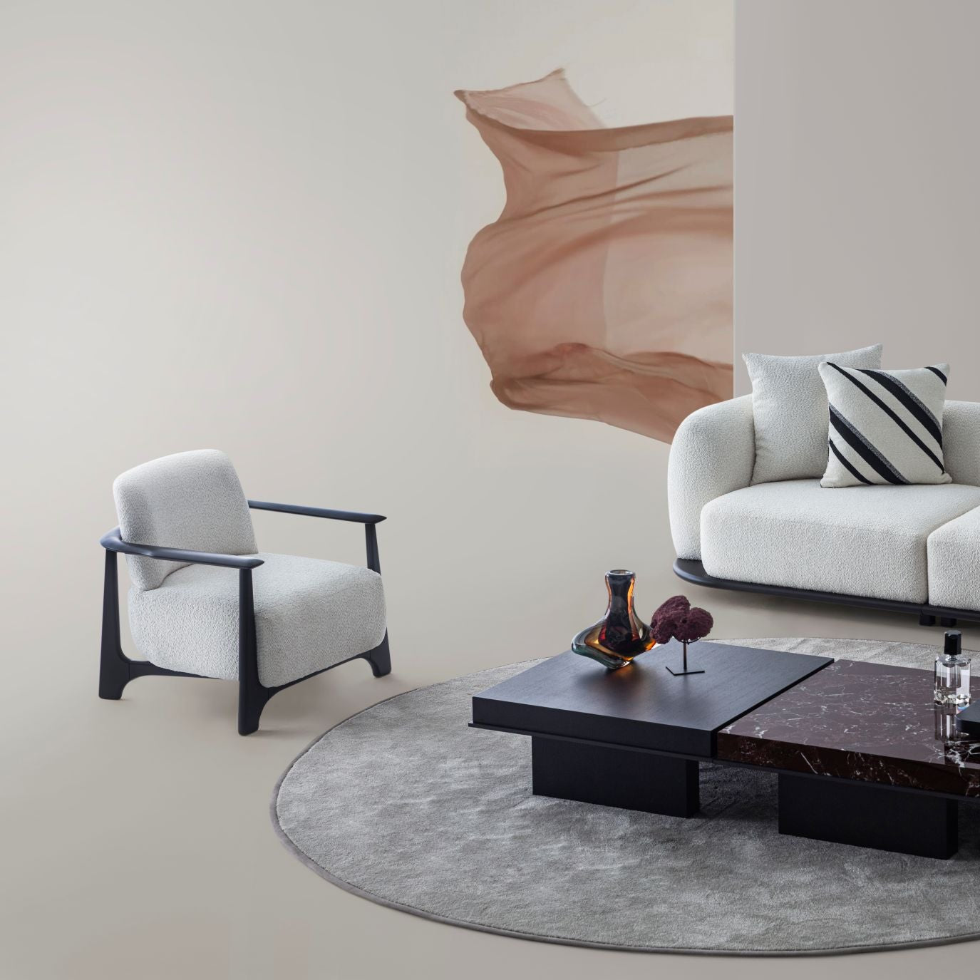 A fotel a Portofino kollekció letisztult luxusát sűríti egy kényelmes, kompakt ülőbútorba. Ívelt háttámlája és támasztó ülőfelülete ergonomikus kényelmet nyújt, miközben megőrzi a kollekció ikonikus, puha formavilágát. A sötét, modern fa-hatású lábszerkezet elegáns kontrasztot alkot a világos kárpitozással. Kiválóan használható olvasósarokba, kiegészítő ülőhelyként egy nagyobb nappaliba vagy designer terekbe. Strapabíró és prémium minőségű anyaghasználata hosszú élettartamot garantál. Letisztult karaktere könnyedén illeszthető modern, minimalista vagy luxus enteriőrökbe.