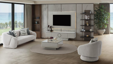 A Panamera TV szekrény elegáns bronz és bézs színkombinációval készült, amely modern és kifinomult megjelenést biztosít a nappalidnak. Stílusos kialakítása és praktikus tárolóhelyei révén tökéletes választás a szórakoztató rendszerek számára, miközben esztétikailag is emeli a helyiség színvonalát. A lába bronz színű, és LED világítás van benne.