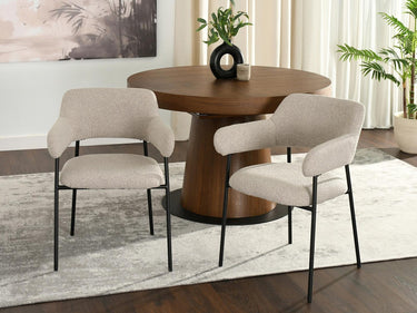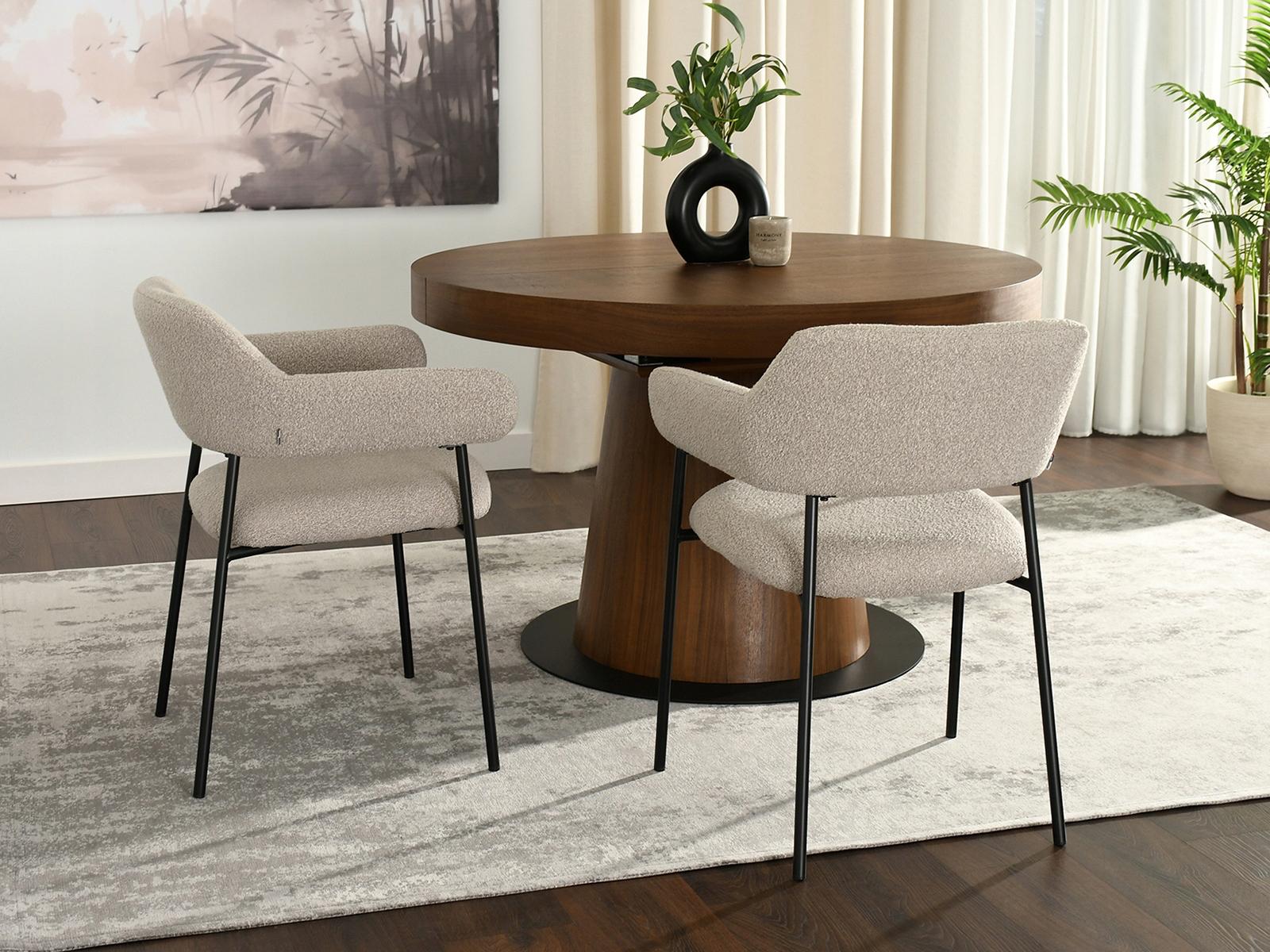 Az Icon szék bézs színű kárpitozása és kör alakú háttámlája elegáns megjelenést biztosít, miközben kényelmes ülőhelyet kínál. A fa lábak meleg, természetes hatást kölcsönöznek, így tökéletesen illeszkedik bármilyen étkezőhöz, dolgozószobához vagy akár egy modern otthoni irodához. A szék kifinomult dizájnja és praktikus kialakítása biztosítja a kényelmet és a stílust minden alkalomra.
