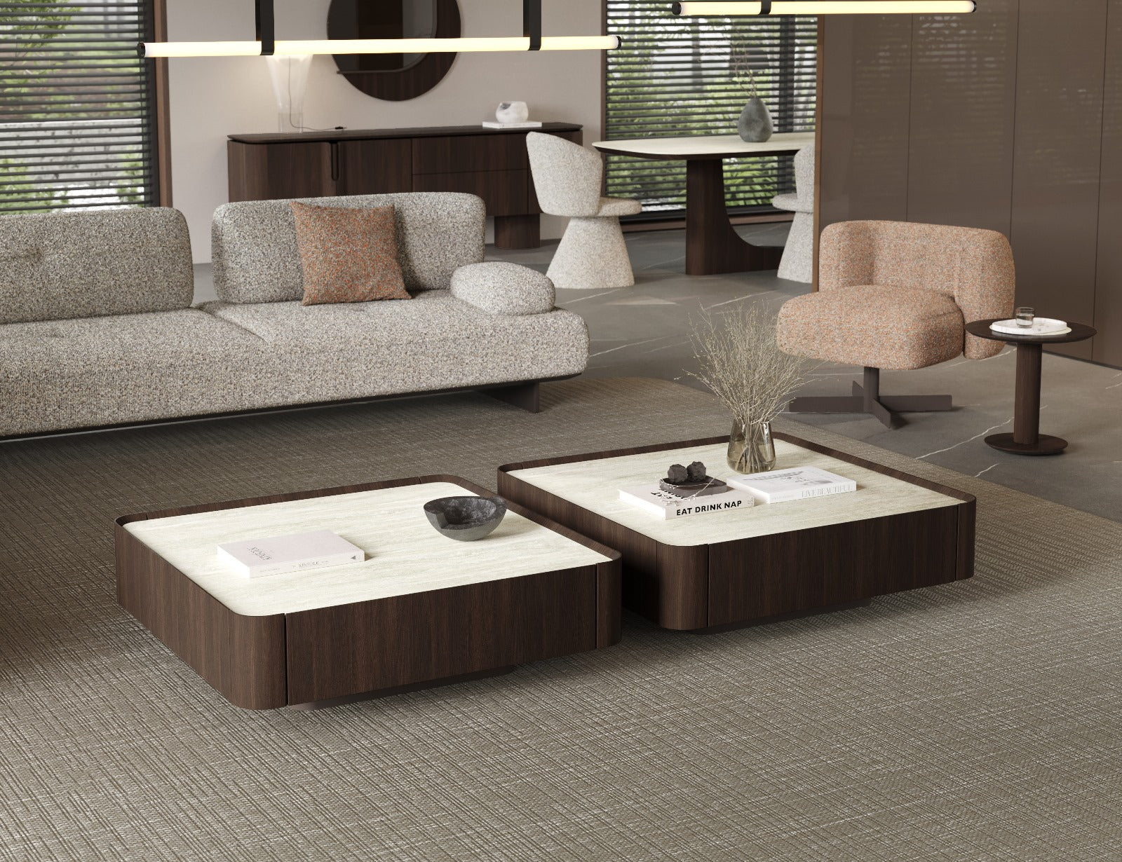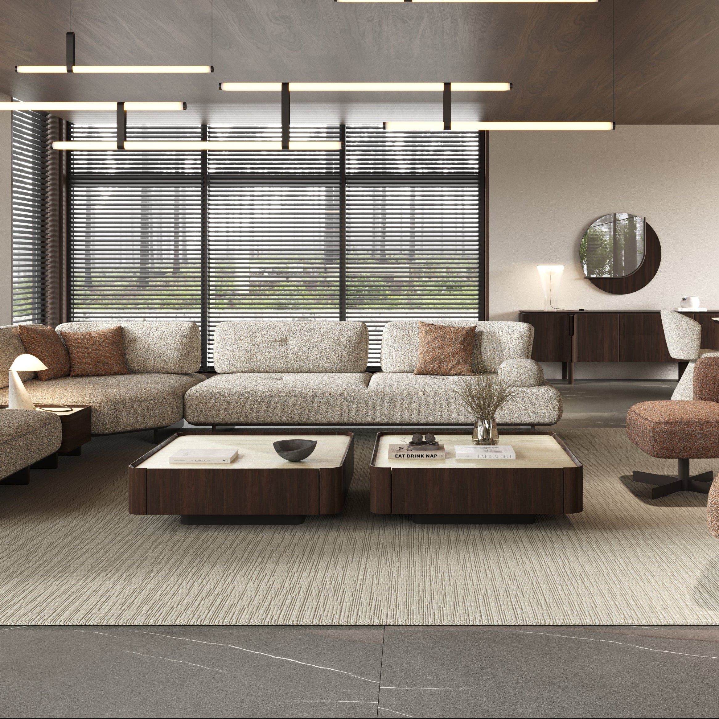 Strapabíró kialakítása miatt ideális választás nagy forgalmú nappalikba és elegáns közösségi terekbe is. A porcelán felület könnyen tisztítható, ellenáll a folyadékoknak és a mindennapi használat jeleinek. Formavilága időtálló, így hosszú éveken át stílusos és releváns marad. A FORESTA kollekció prémium darabjaként tökéletesen harmonizál a sorozat többi bútorával. Kifejezetten ajánlott, ha a lakberendezésben a természetes kövek modern interpretációját keresed.