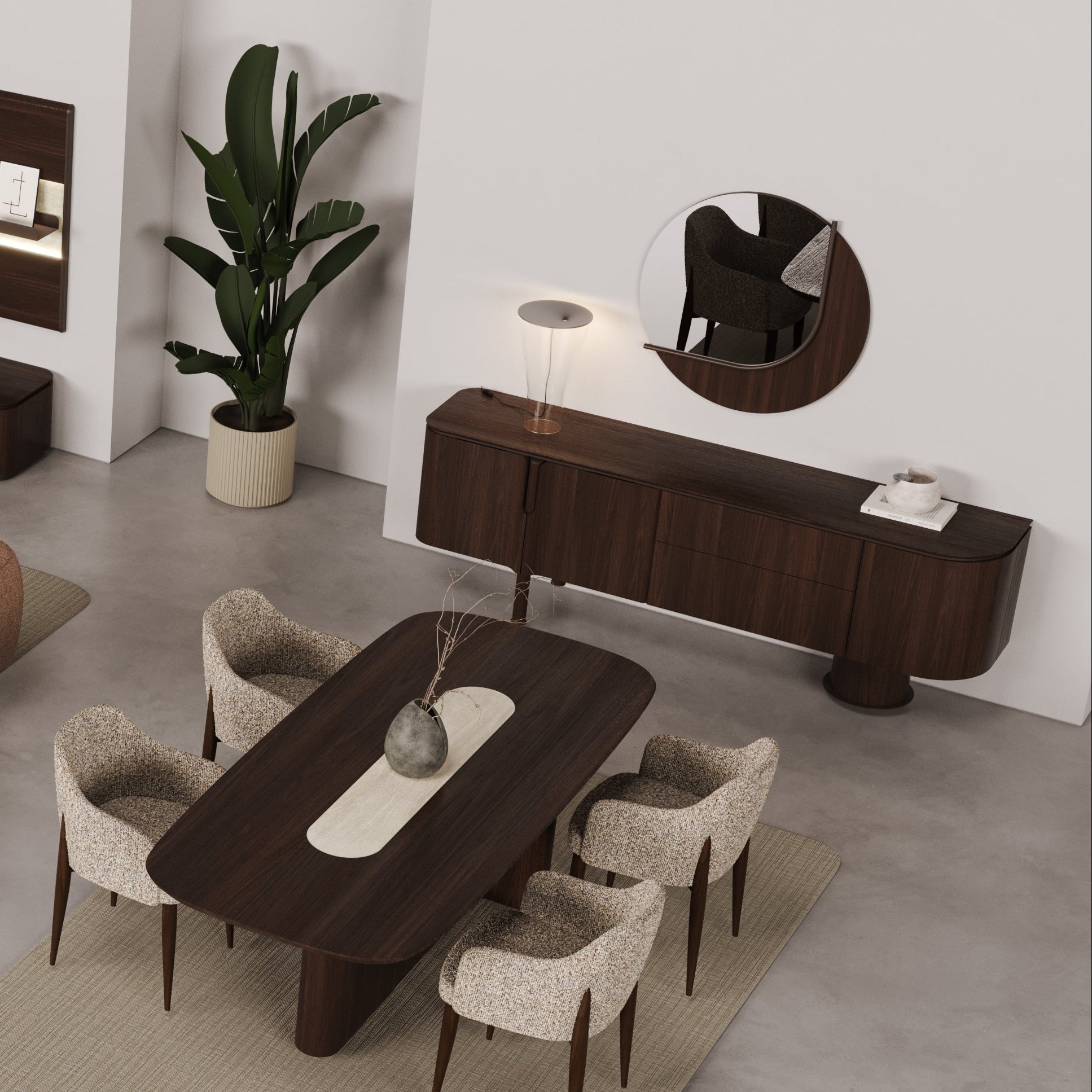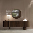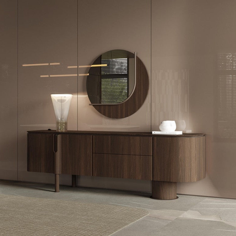 A Foresta tükör a kollekció ikonikus, lágy íveit és természetes eleganciáját viszi tovább, így tökéletes kiegészítője a Foresta konzolasztalnak – de önálló dizájnelemként is megállja a helyét. Kerek formája modern, harmonikus megjelenést ad a térnek, miközben a tükröződő felület tágasabbnak és világosabbnak láttatja a helyiséget. A körbefutó fa keret meleg, prémium hatást kelt, összhangban a kollekció többi darabjával. Aszimmetrikus fém dísze egyedi, művészi karaktert kölcsönöz, amely azonnal magára vonja a figyelmet. Tartós, minőségi anyaghasználata hosszú élettartamot garantál. A tükör külön megvásárolható, így rugalmasan kombinálható bármely más bútorral vagy enteriőr stílussal. Ideális választás előszobába, nappaliba vagy étkezőbe, ahol egyszerre funkcionális és dekoratív szerepet tölt be.