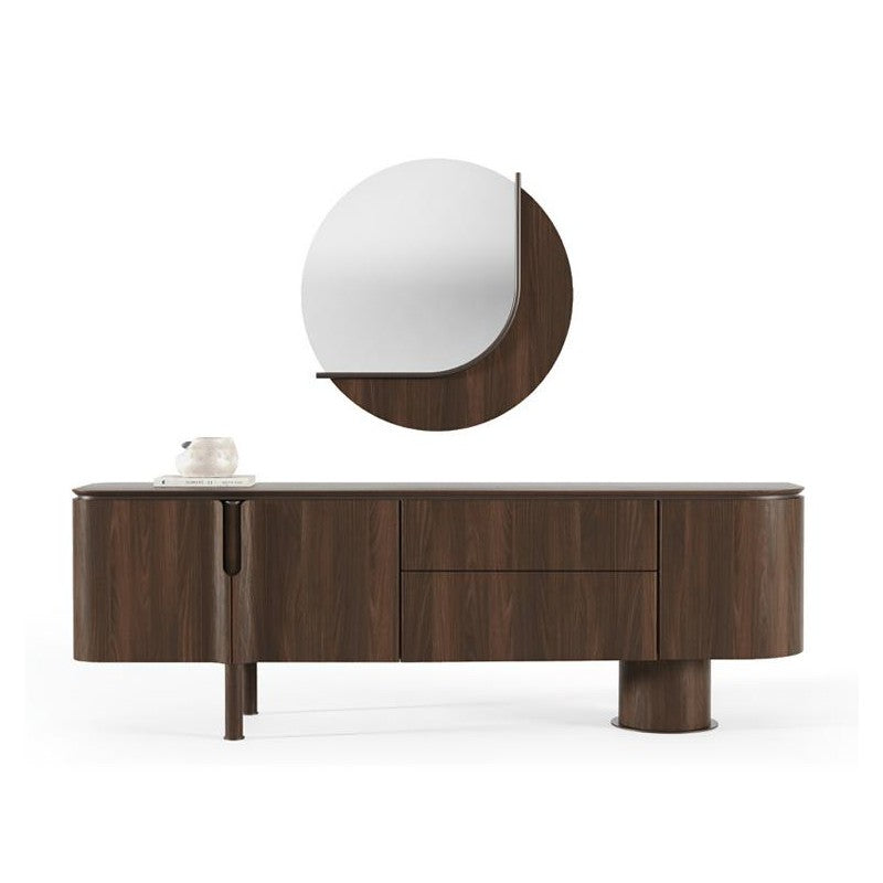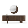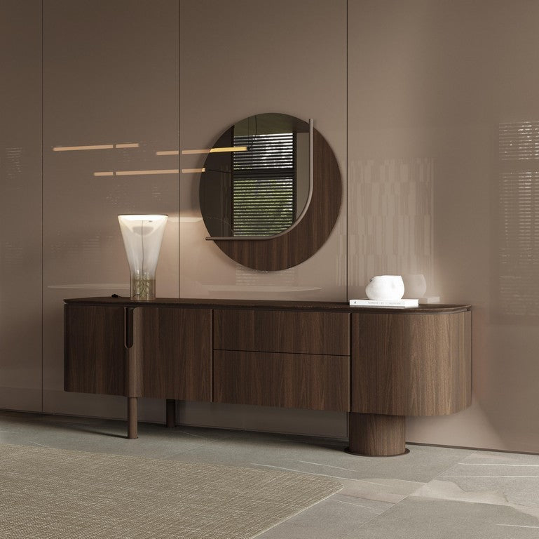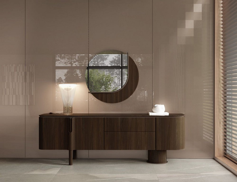 A Foresta tálalószekrény a kollekció jellegzetes, természetes eleganciáját hozza el a nappaliba vagy étkezőbe, letisztult íveivel és meleg fa felületével. Modern, mégis időtálló formavilága könnyedén illeszkedik prémium terekhez, miközben karakteres fókuszponttá válik a helyiségben. Tágas tárolóhelyeinek köszönhetően rendkívül praktikus: elrejti a mindennapi tárgyakat, így segít fenntartani a rendezett, harmonikus környezetet. Stabil felülete dekorációk, lámpák vagy könyvek számára is ideális.