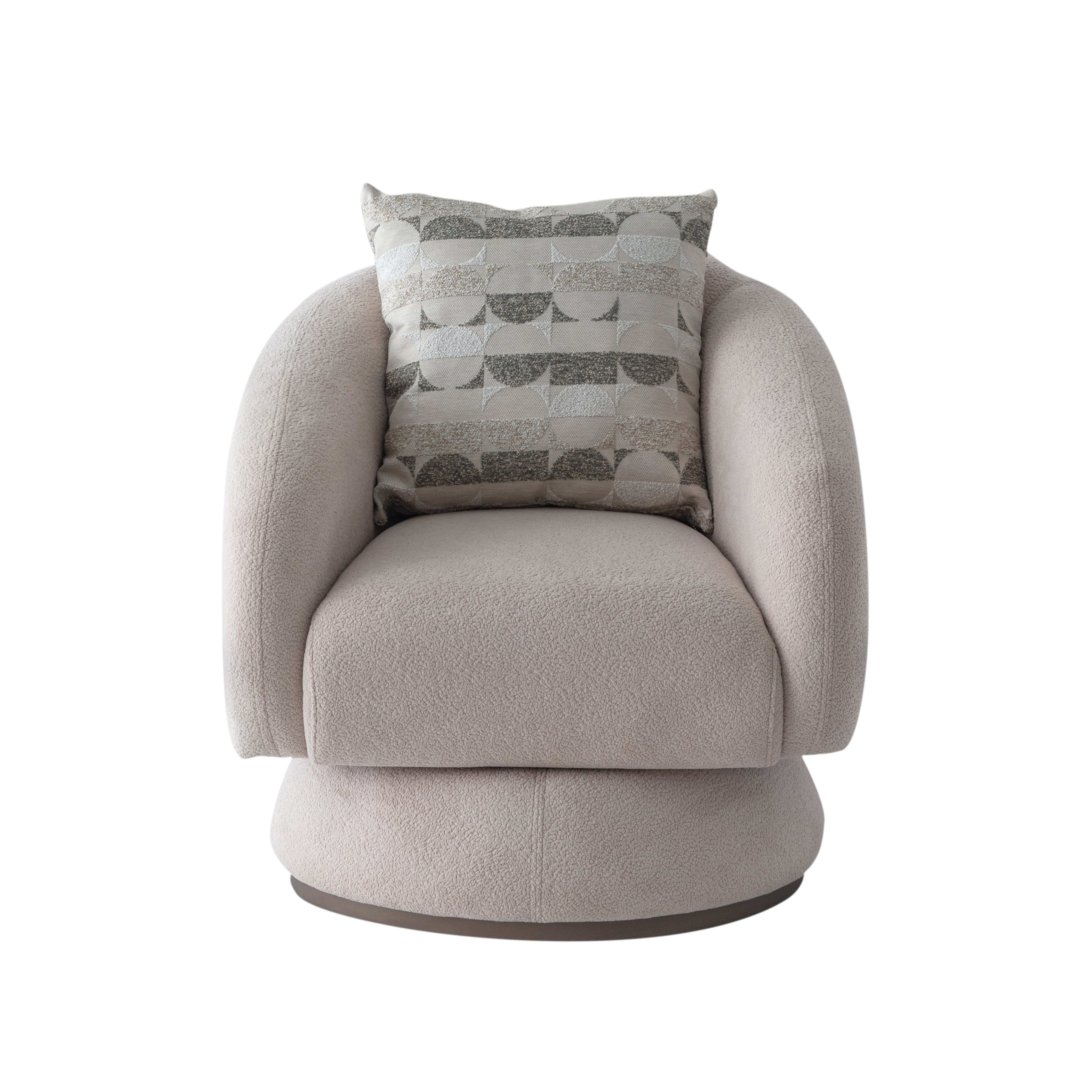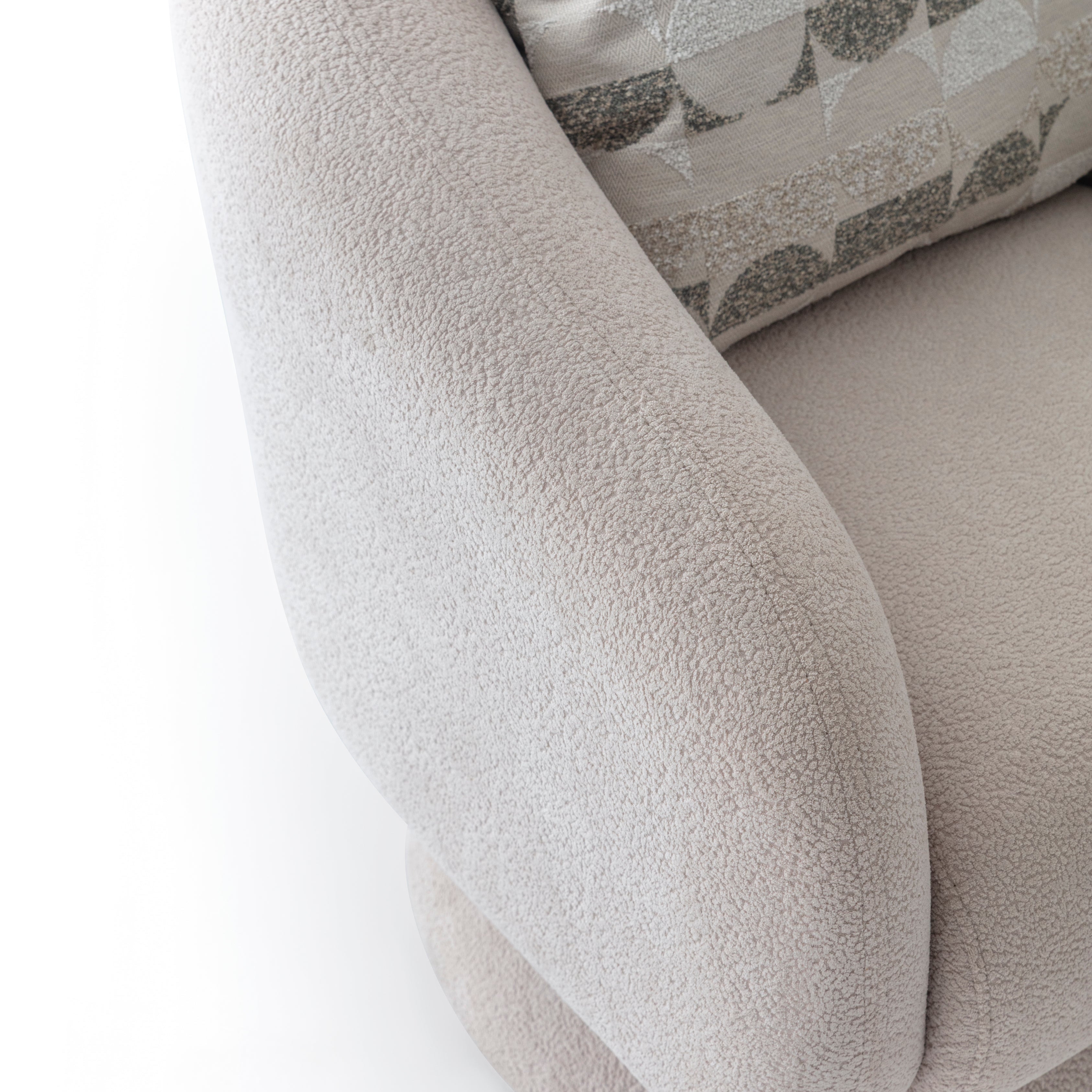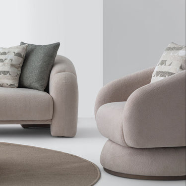 Az Aventador forgós fotel a nappali egyik legkarakteresebb eleme, amely a kényelem és funkcionalitás tökéletes kombinációja. Ívelt, átölelő formája teljes ellazulást biztosít, miközben vizuálisan is lágyítja a tér geometriáját. Puha, prémium minőségű kárpitja kellemes tapintású és elegáns megjelenésű. A forgó talp könnyed, rugalmas mozgást tesz lehetővé, így ideális beszélgetősarok vagy olvasósarok kialakításához. Stabil felépítése és minőségi szerkezete hosszú élettartamot biztosít. Modern, minimalista enteriőrökben különösen jól érvényesül a fotel letisztult, mégis karakteres megjelenése. A párna mintázata harmonikusan kapcsolódik a teljes Aventador kollekció vizuális nyelvéhez. Ez a fotel azoknak szól, akik egy kényelmes, luxusérzetű és praktikus bútordarabot keresnek.