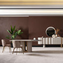 A Portolima étkezőszék modern dizájnja és prémium kivitelezése tökéletes választás, ha stílusos és kényelmes ülést keresel az étkezőbe. A bézs bársony anyag nemcsak elegáns megjelenést biztosít, hanem rendkívül kellemes tapintású is, így minden étkezésed élménnyé válik. A szálcsiszolt arany lábak exkluzív megjelenést kölcsönöznek, kiemelve a szék egyedi karakterét. Ergonomikus kialakításának köszönhetően hosszú vacsorák vagy baráti összejövetelek alkalmával is maximális kényelmet érhetsz el.
