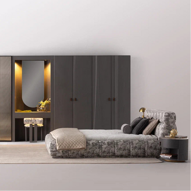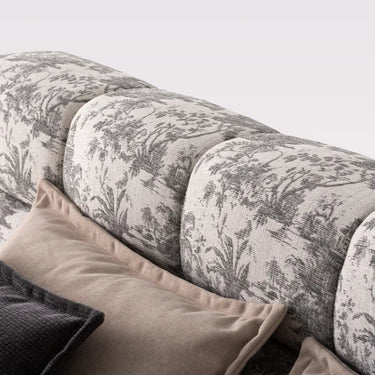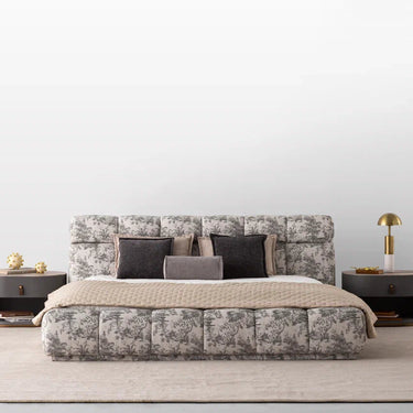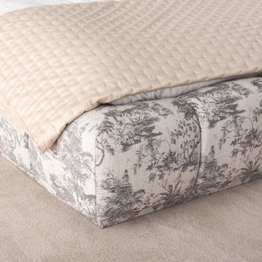 A ZEN ágy egy modern, karakteres megjelenésű franciaágy, amely teljes egészében kárpitozott szerkezettel készül. A belső váz tömörfa és rétegelt lemez kombinációjából épül fel, garantálva a tartósságot és a stabilitást. A burkolat többrétegű poliuretán habbal párnázott, különleges steppelt borítása pedig prémium minőségű jacquard szövettel készül, klasszikus toile de Jouy mintával. A háttámla nagy méretű, mély steppelésű paneljei vizuális és akusztikai komfortot is biztosítanak. A huzat nem levehető, de könnyen tisztítható kárpitanyagból készül, amely megfelel a kopásállósági és tűzállósági előírásoknak.. Az ágy ideális választás minden olyan enteriőrbe, ahol a természetközeli esztétika és a magas minőség találkozik.